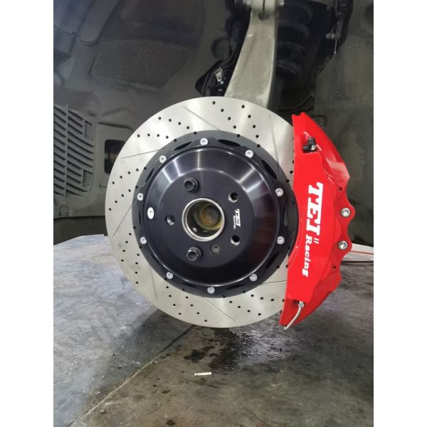 Go fast and stop faster. TEI Racing Big Brake Kits provide you with serious braking power when you need it most. TEI Racing brake kits are offered for both the front and rear brakes with rotor sizes ranging from 285mm-405mm drilled or slotted or drilled and slotted, 2-6 piston Forged Monoblock aluminum caliper options, and custom colors. Stainless steel brake lines, brake pads, and all hardware are included for a direct bolt-on installation where no modifications are required.