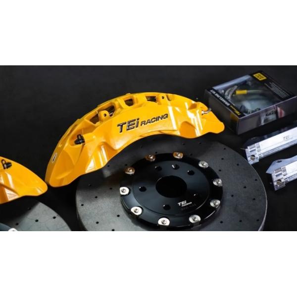 Go fast and stop faster. TEI Racing Big Brake Kits provide you with serious braking power when you need it most. TEI Racing brake kits are offered for both the front and rear brakes with rotor sizes ranging from 285mm-405mm drilled or slotted or drilled and slotted, 2-6 piston Forged Monoblock aluminum caliper options, and custom colors. Stainless steel brake lines, brake pads, and all hardware are included for a direct bolt-on installation where no modifications are required.